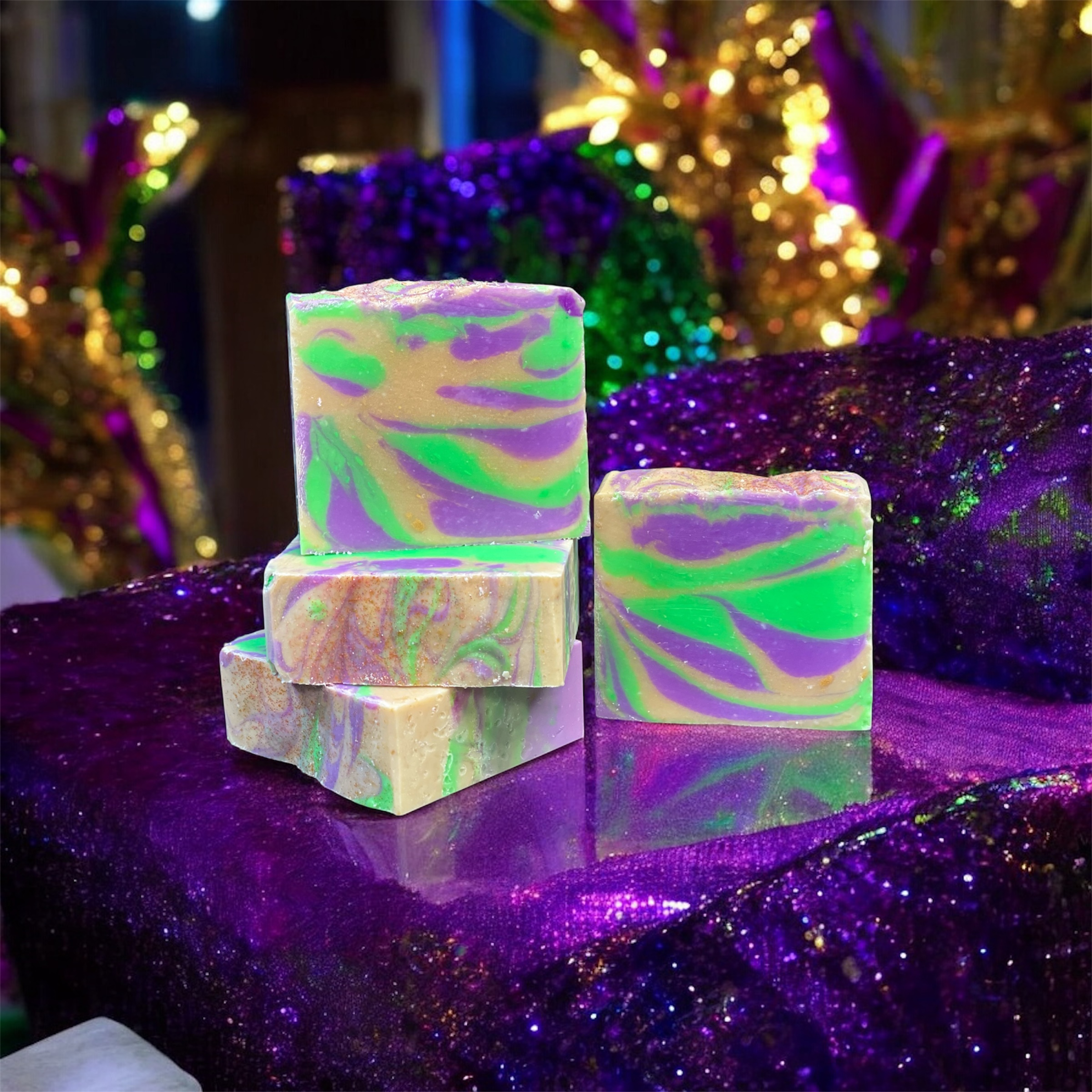 Ingredients: Water, Beef Tallow, Olive Oil, Sodium Hydroxide, Coconut Oil, Avocado Oil, Shea Butter, Fragrance and Mica Powder.